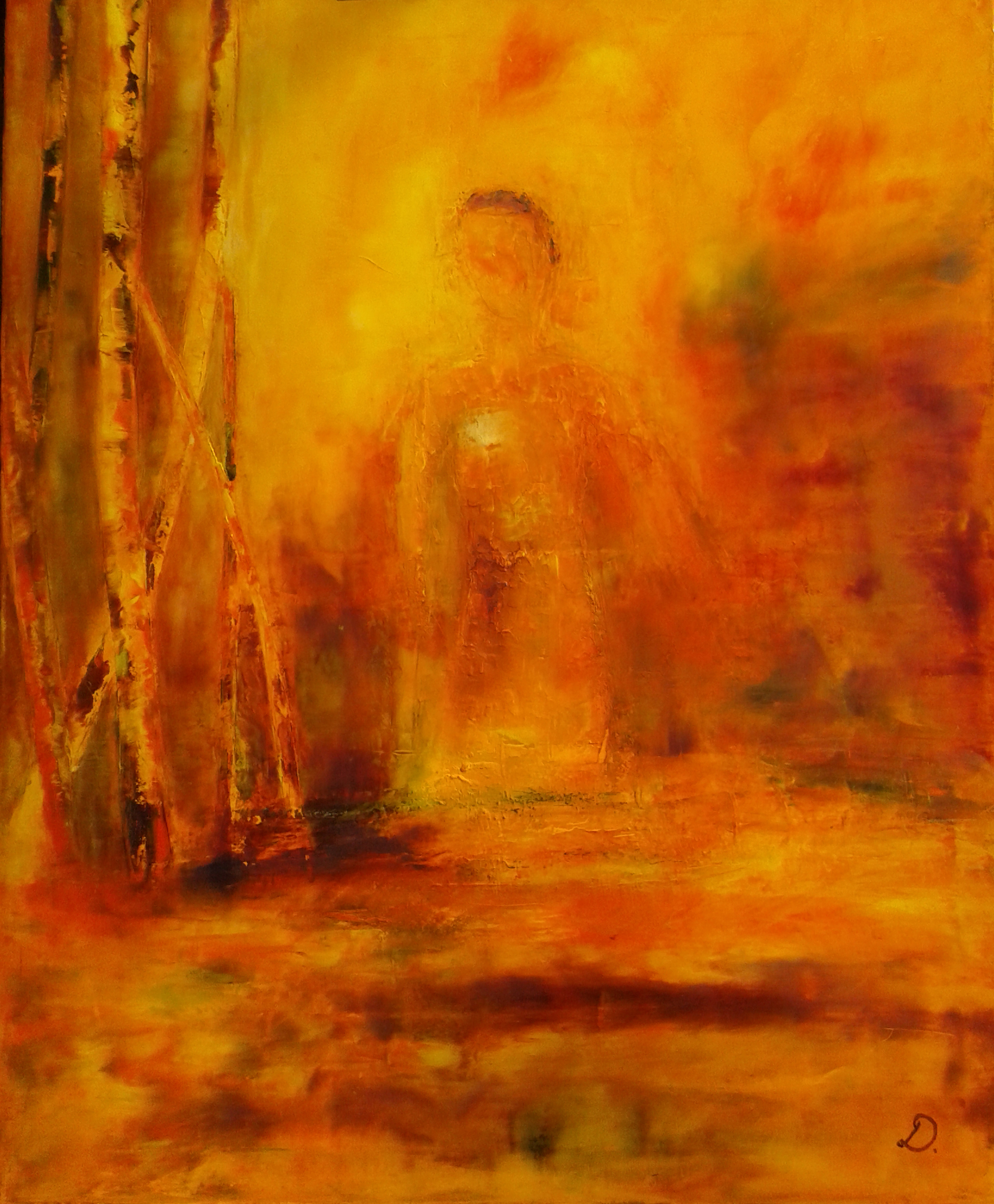 De semaine en semaine, la guerrière s’est adoucie, des bambous sont apparus. J’ai donc fait disparaître le glaive et j’ai travaillé la silhouette de manière à la rendre plus floue.