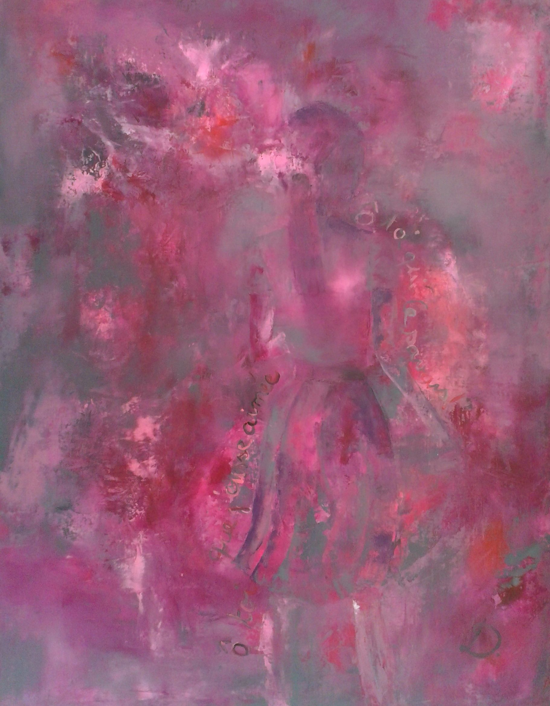 C’est la première fois que je m’inspire d’une poésie. Je l’ai lue par hasard et elle m’est restée dans la tête plusieurs semaines. J’ai crée alors mes couleurs, des gris colorés. Les couleurs ne ressortent pas forcément sur la photo mais c’est d’un vrai rose que se nuancent toutes les couleurs. Elles diffèrent énormément de mes couleurs habituelles.
